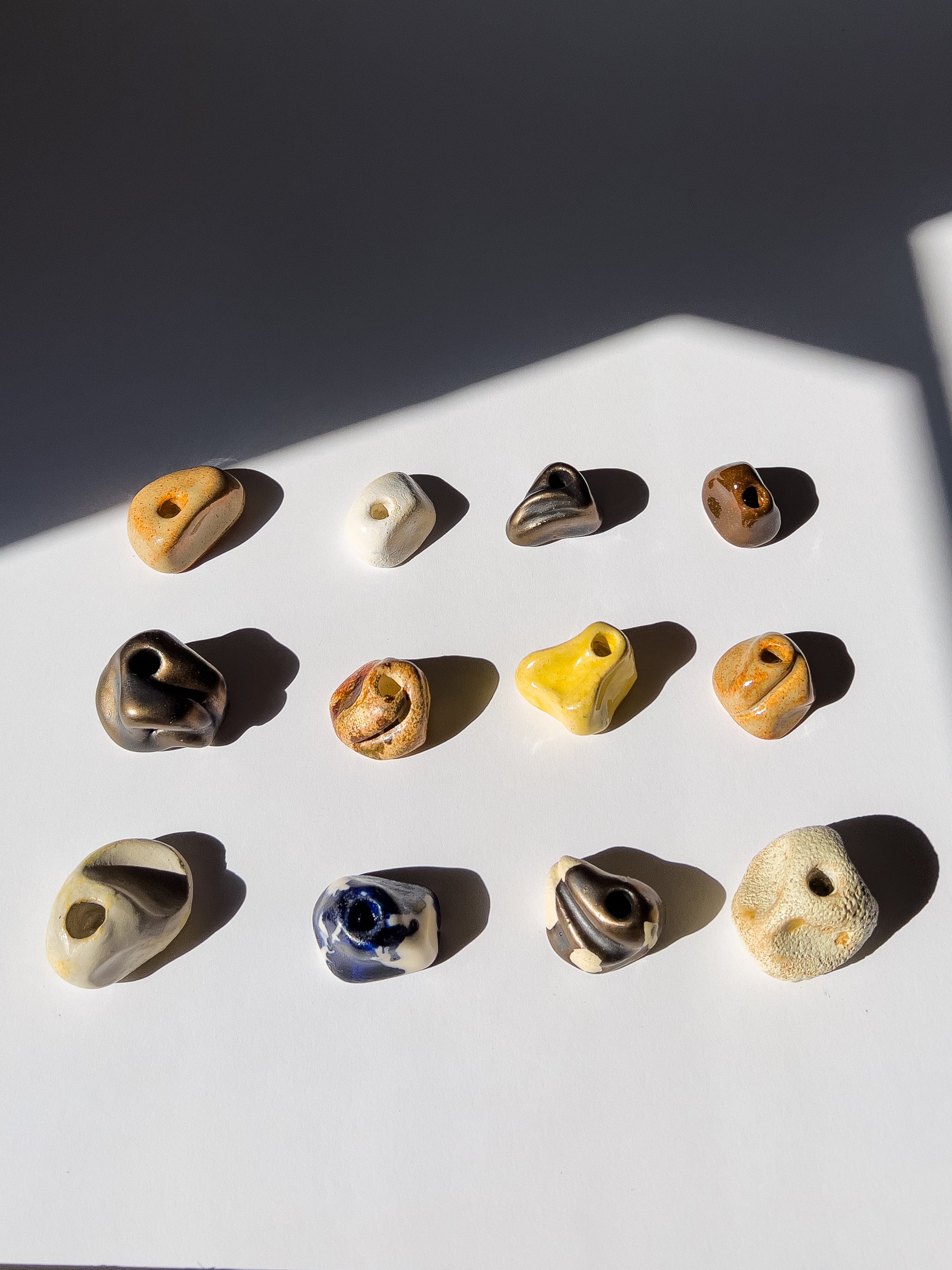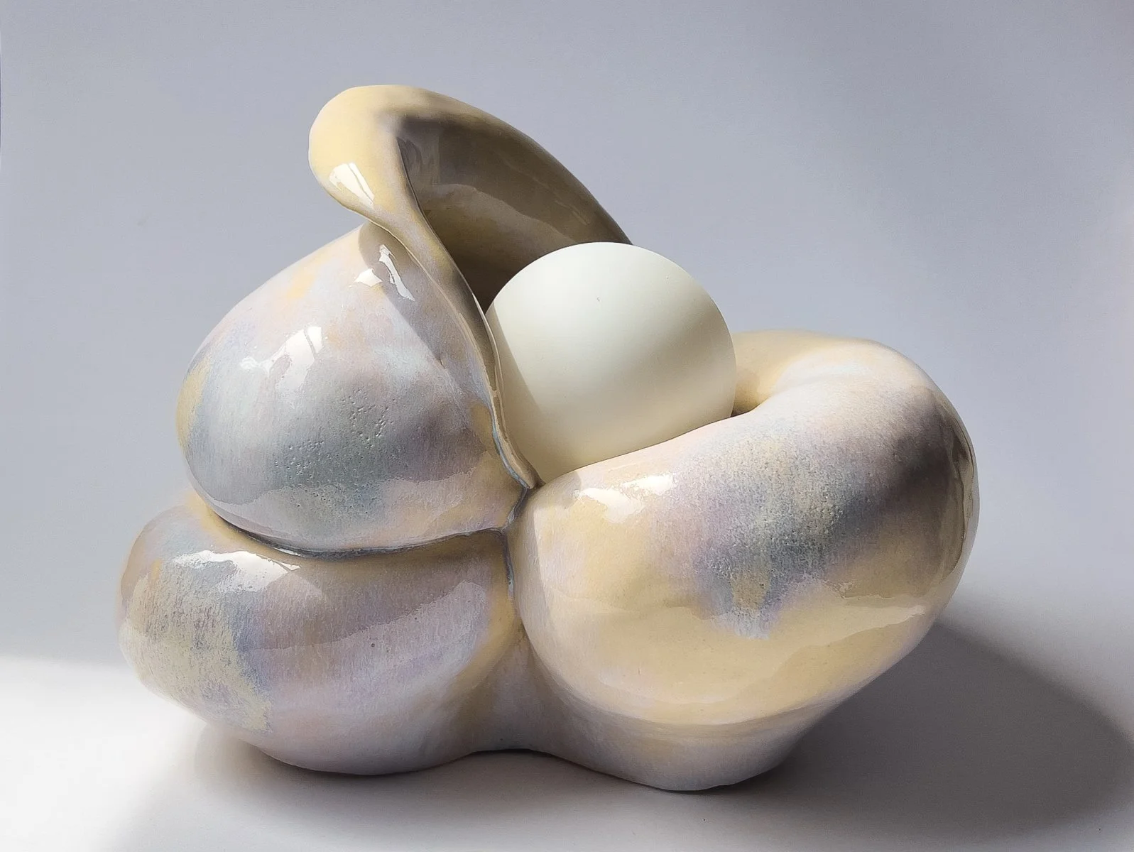 Experiments in glaze firing combinations that embody organic forms with various stone-like qualities.